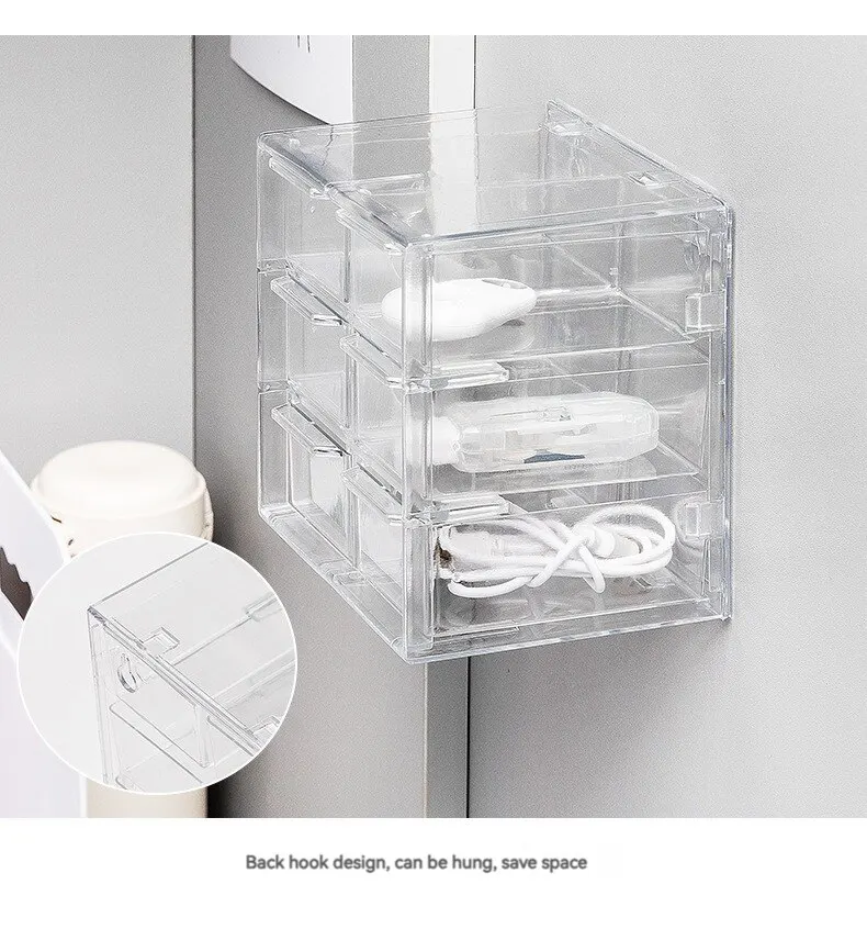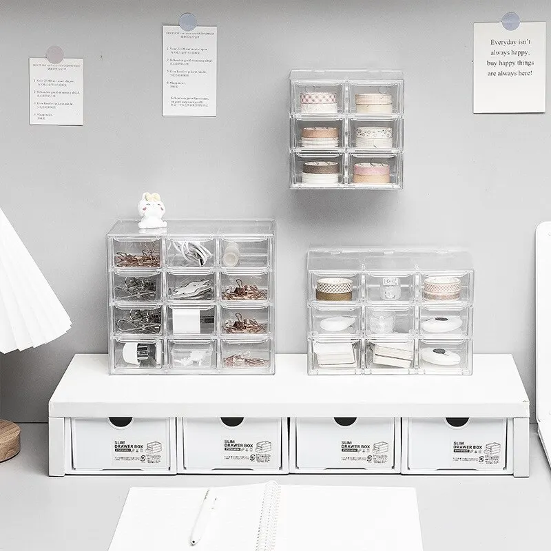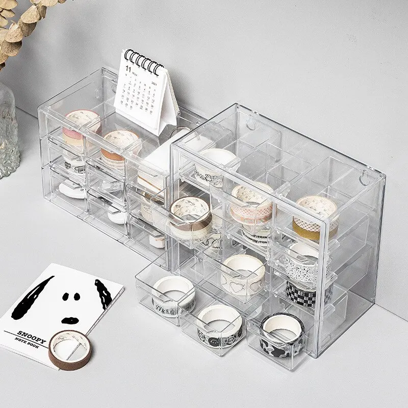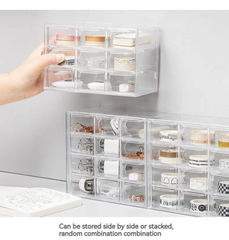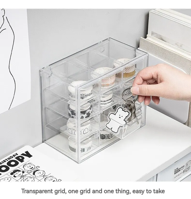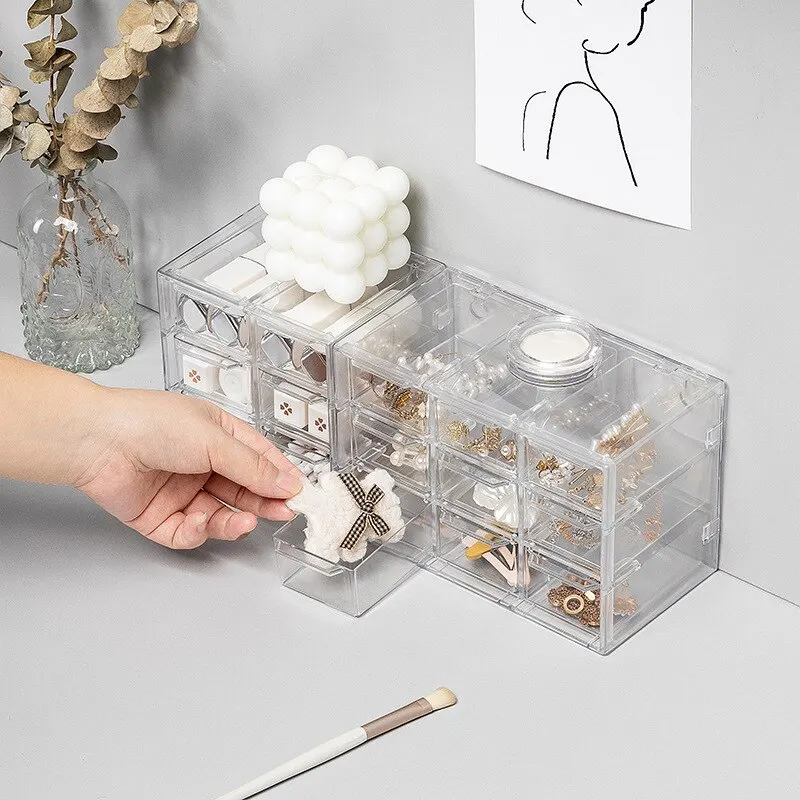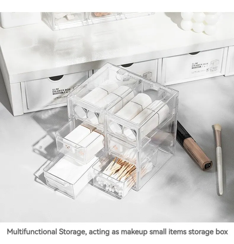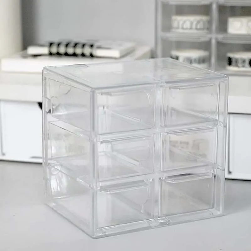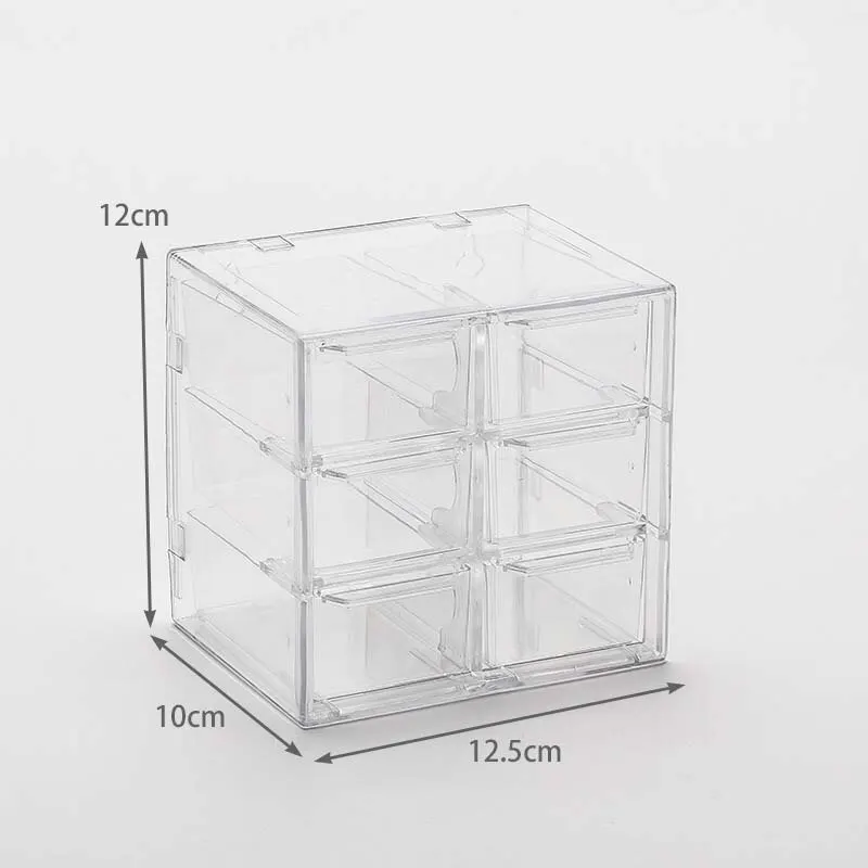 صندوق تخزين شفاف من ستة مربعات لتخزين المكياج والاكسسوار والمجوهرات