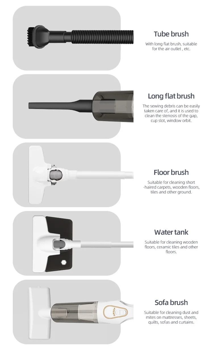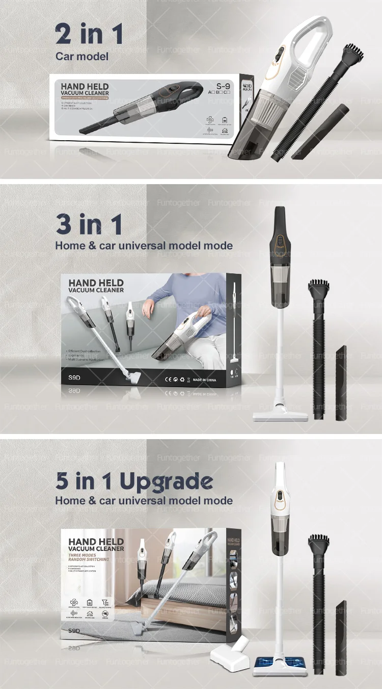مكنسة كهربائية لاسلكية محمولة للمنزل والسيارة 5 في 1 قابلة لإعادة الشحن ومزودة بمنفذ USB عالية الشفط