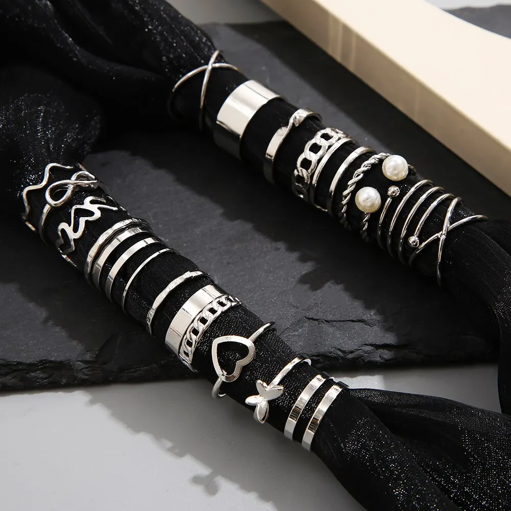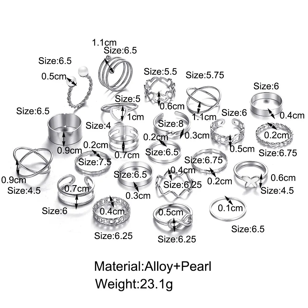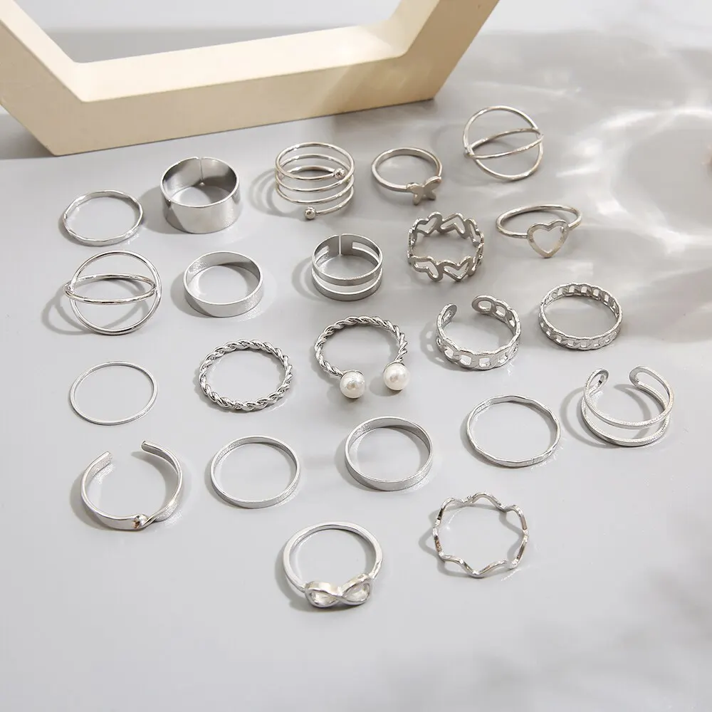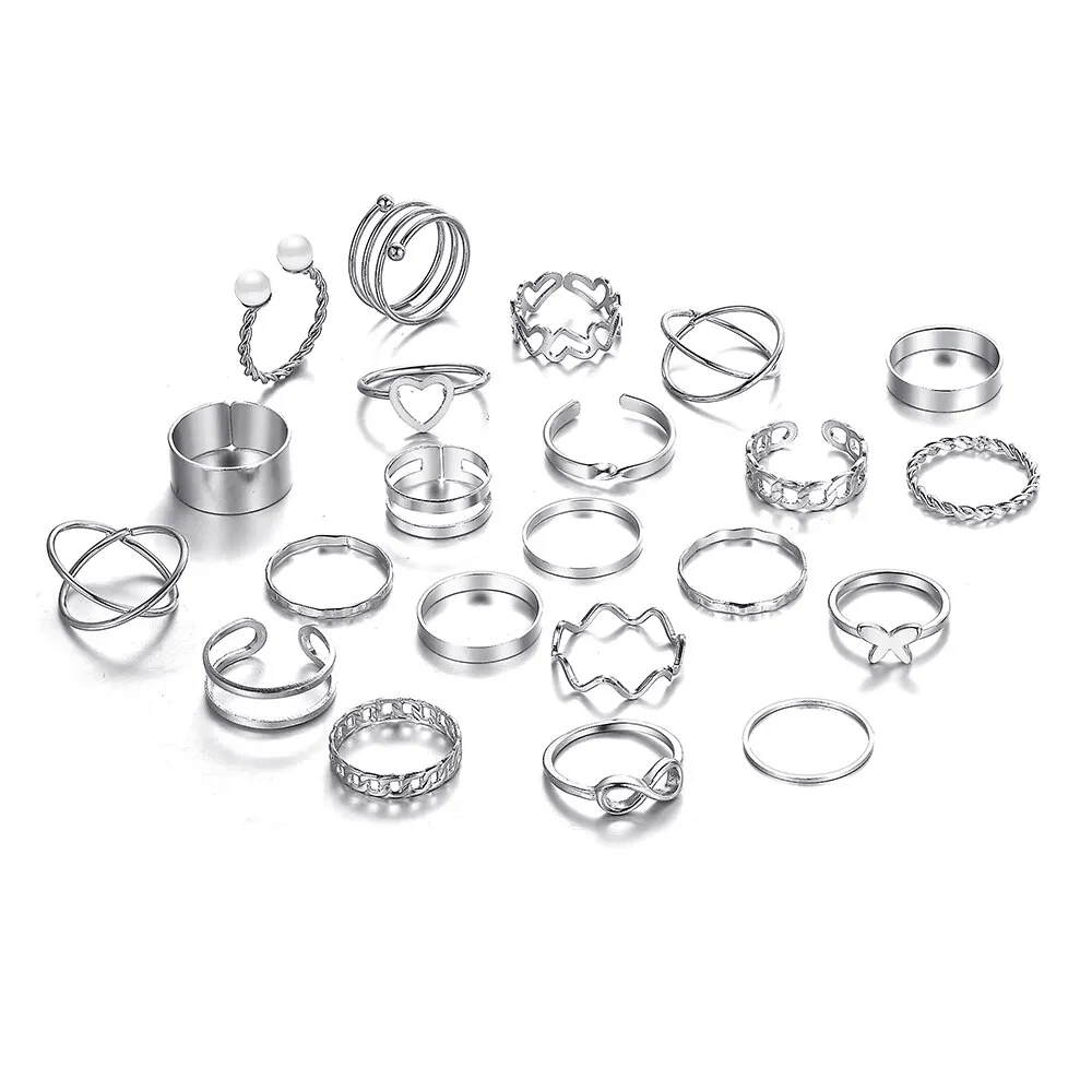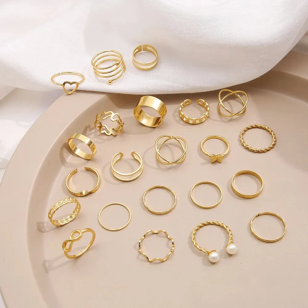 طقم خواتم ( 22 خاتم ) بنمط القلب ذهبي / فضي